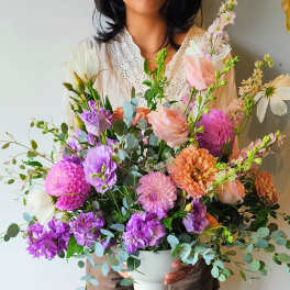 Price: $225.00 Extra Large Ceramic Flower Arrangement-Bright & Cheery Product Tags: Same-day Delivery