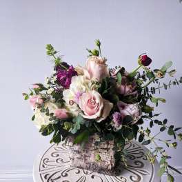 Price: $125.00 Small Standing Tall Ceramic Flower Arrangement-Soft & Elegant Product Tags: Same-day Delivery